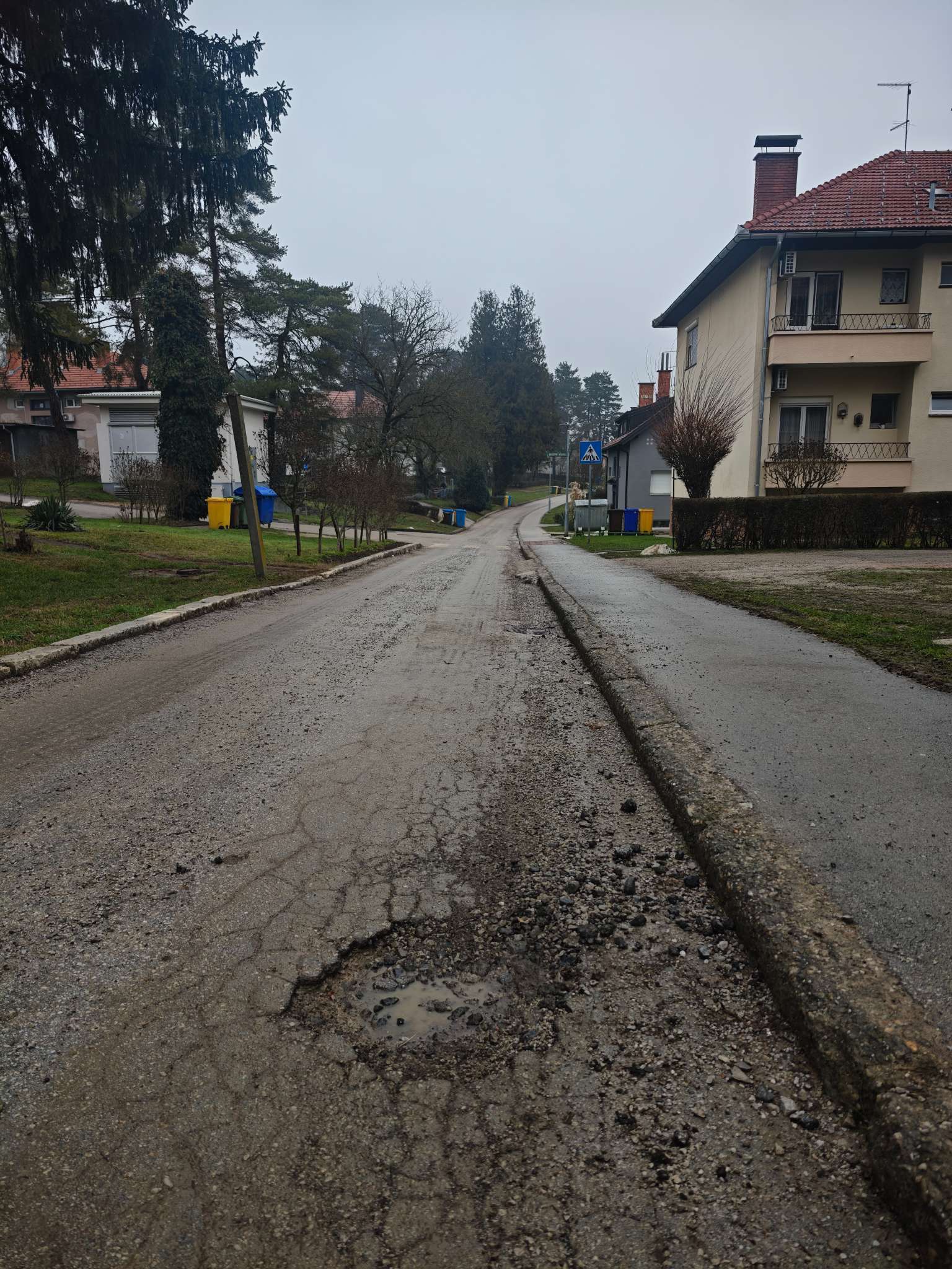 Oštećenje ceste je nastalo nakon čišćenja snijega ralicama u periodu od 12. do 1. mjeseca ove godine. Nalazi se pored ulaza Mrežnička 2, Švarča.