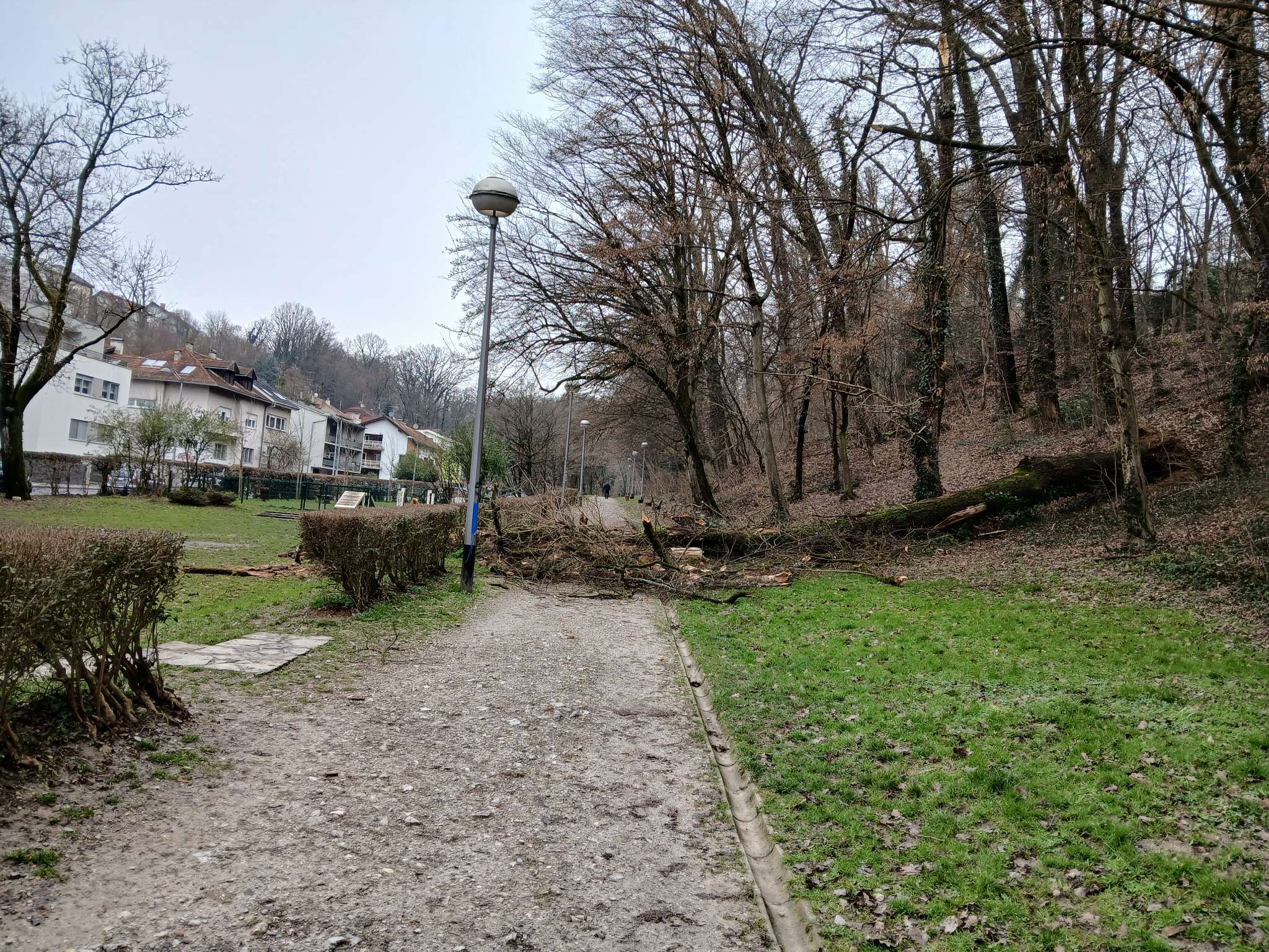 Srušeno stablo na stazi u parku Zelengaj, između dječjeg i psećeg igrališta
